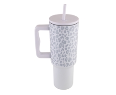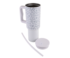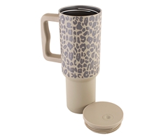 Keep drinks hot or cold all day with this 1200ml leopard print travel mug. It has a double-wall stainless steel construction and a leak-proof screw lid. The distinct print makes it a good promotional item for your brand.