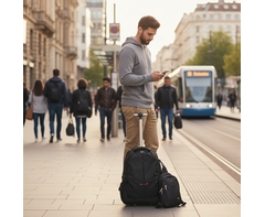 - A back zip compartment with a Velcro strip holds the wheel cover, keeping wheels tidy.