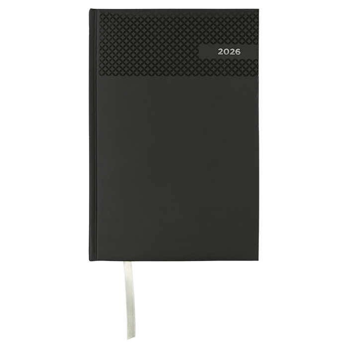 Stay organised throughout 2026 with this practical A5 diary. It features a soft navy velvet-touch cover, providing a pleasing feel. The diary offers ample daily space for notes and appointments, making it a good choice for corporate gifts and promotional use.