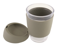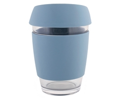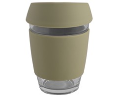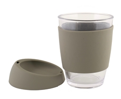 - Made from glass with a matching silicone sleeve and lid, designed for a comfortable and secure grip, appealing to coffee lovers.