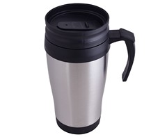 Keep your drinks hot or cold with this 400ml thermal mug. It has a stainless steel outer shell and a PP inner lining for insulation, with a rubber seal to secure contents. This mug is ideal for promotional campaigns.