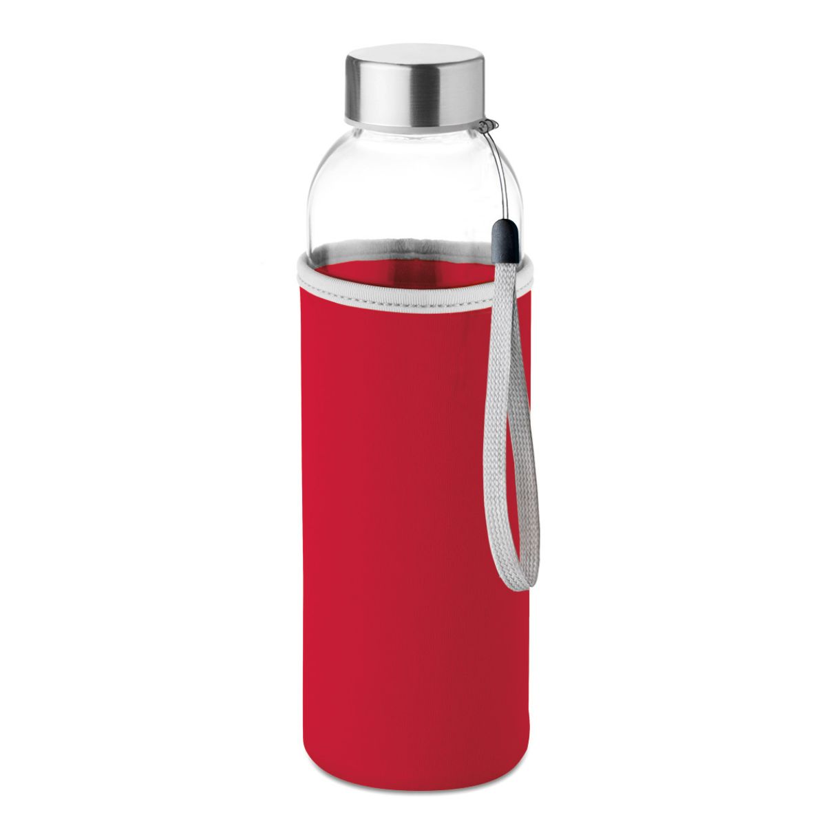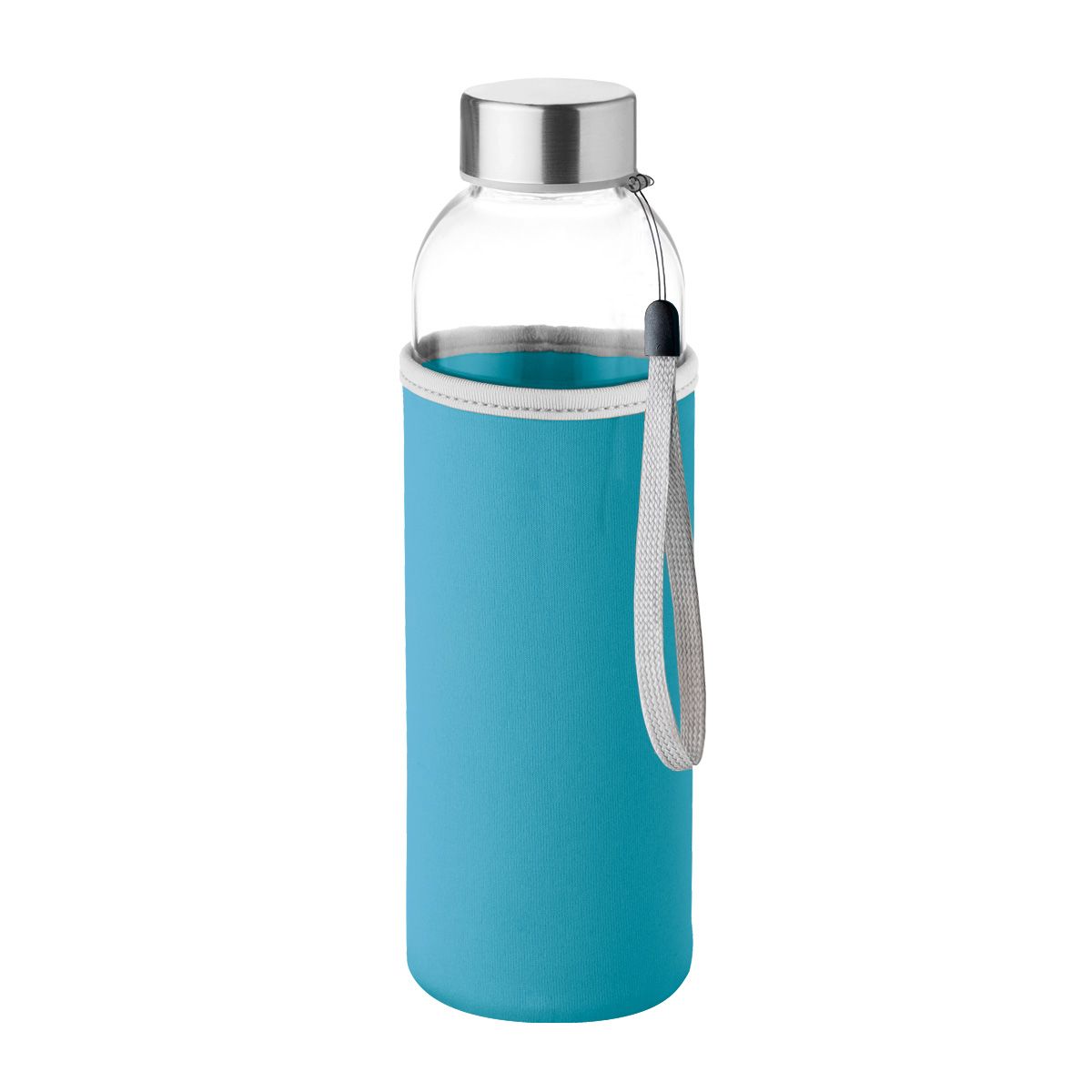 This 500ml Philadelphia glass bottle is ideal for corporate branding and daily hydration. It includes a black Neoprene sleeve to keep drinks cool and a leak-proof silicone lid for spill prevention. A durable, reusable item for promotional activities.
