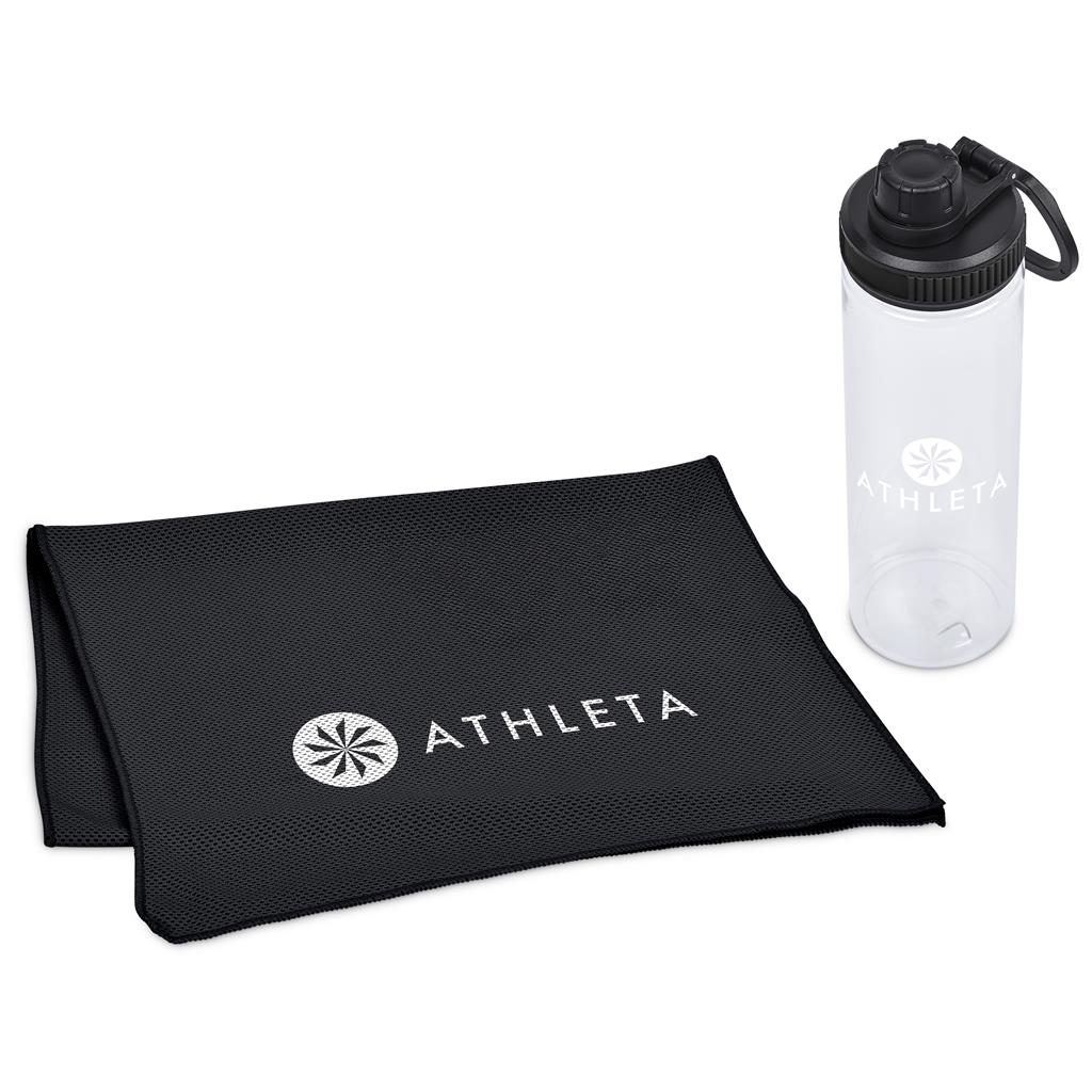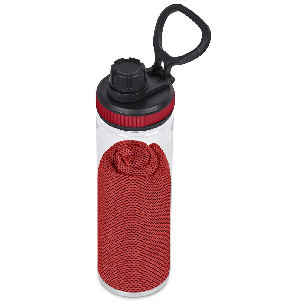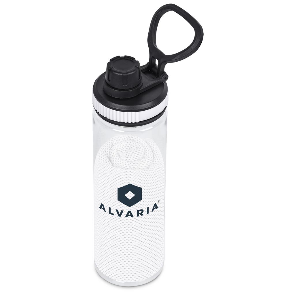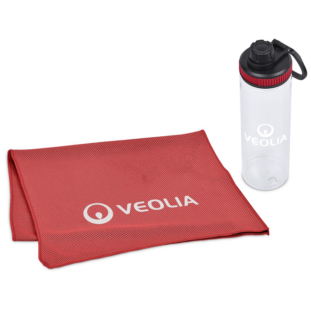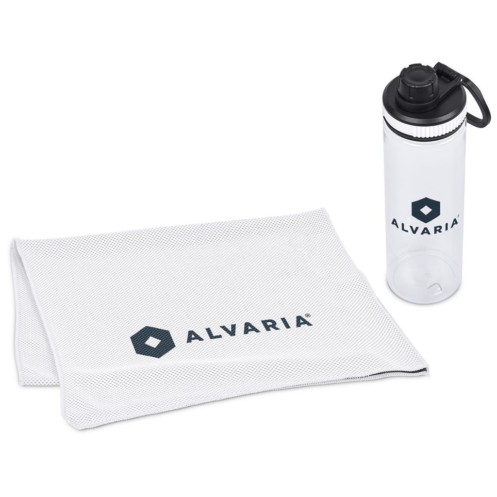 Stay cool and refreshed with the Altitude Drummond Active Set. It features a 750ml recycled PET water bottle with a watertight lid and a microfibre cooling towel. This practical set is ideal for general promotional use.
