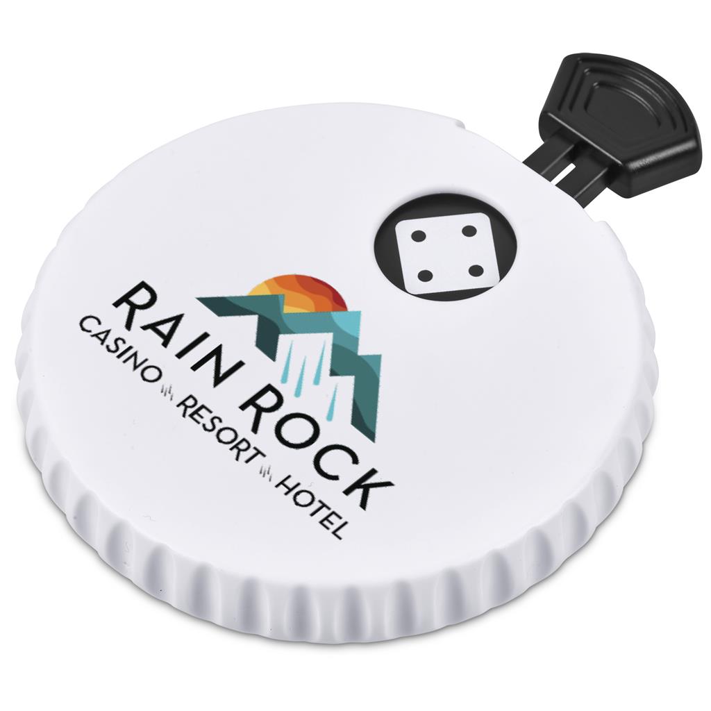 The Altitude Flukey Bottle Opener offers practical use and entertainment. It features a spinning disc that displays a random dice number when a button is pressed, working as both a handy bottle opener and a simple dice game. Made from durable ABS plastic, it is a memorable item for Altitude promotions.