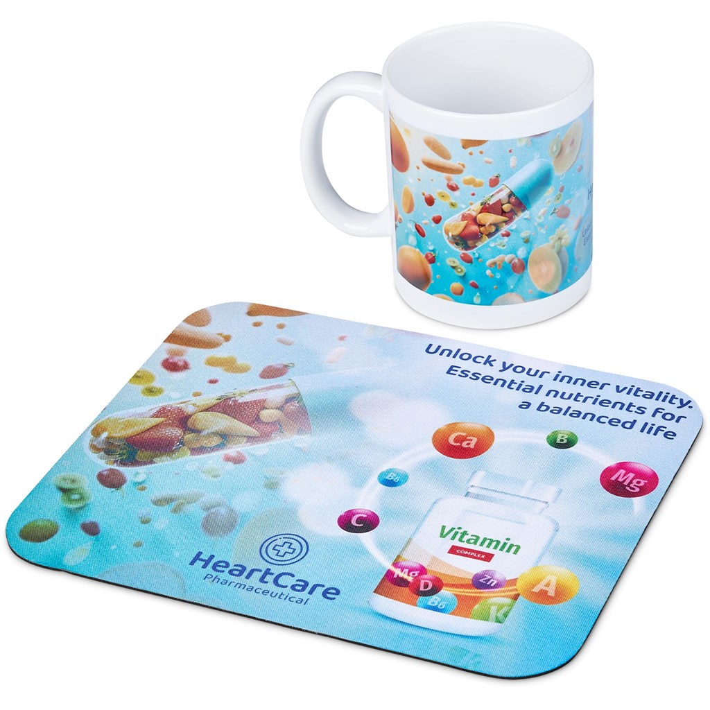 - Both the AB grade ceramic mug and the mouse pad can be branded with full-colour sublimation for good brand exposure.