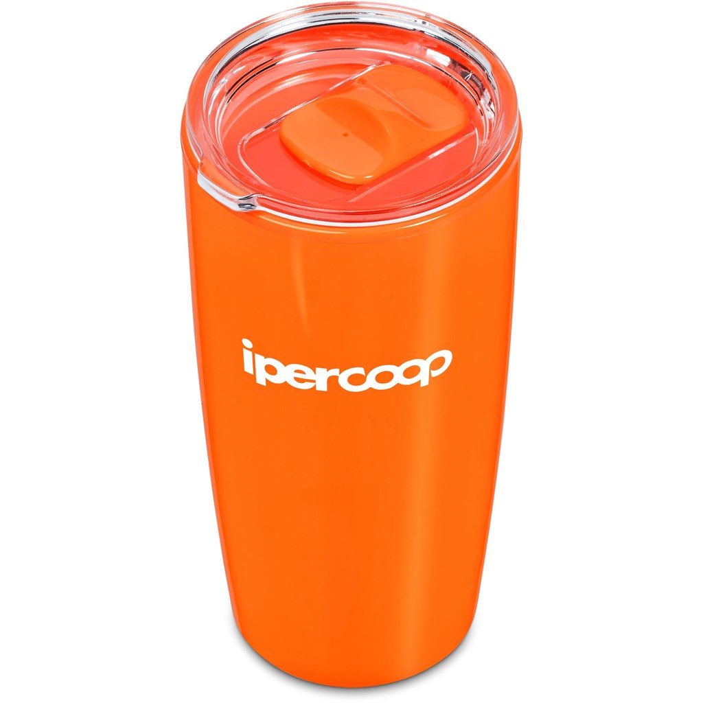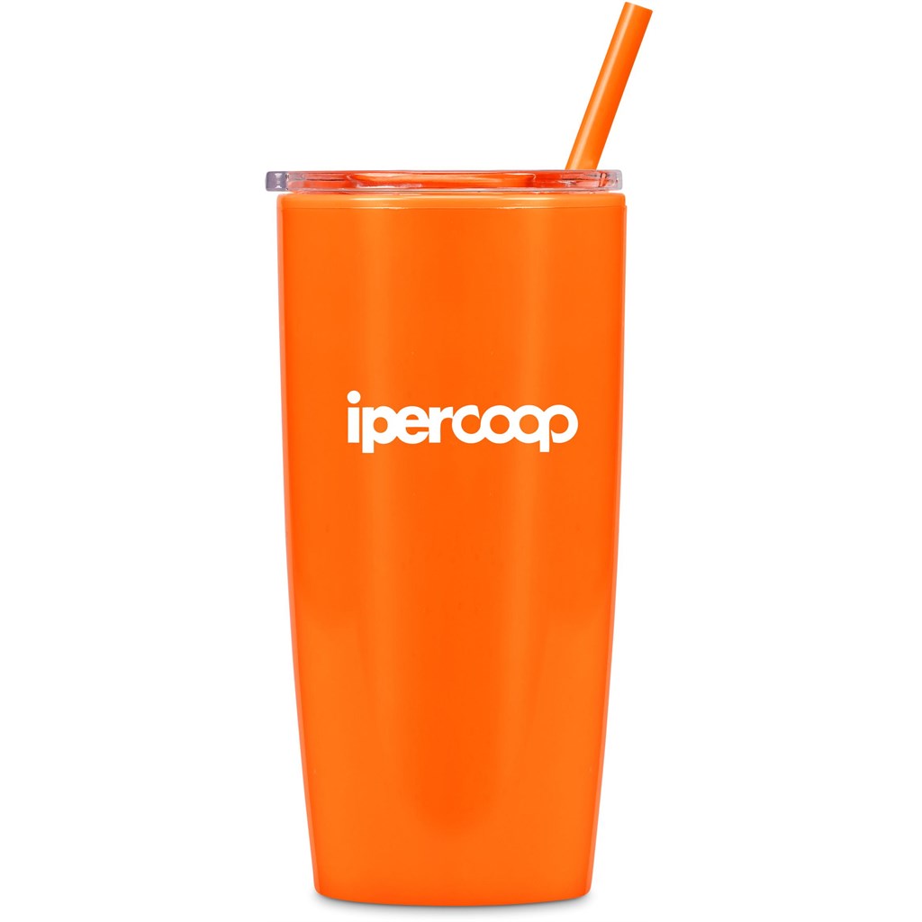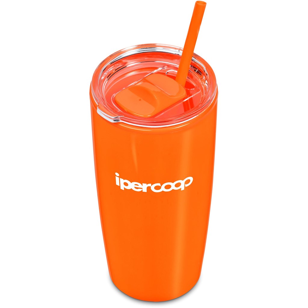 • The double-wall tumbler is made from PP, has a 600ml capacity, and includes a reusable straw, standing 18.6 cm high.
