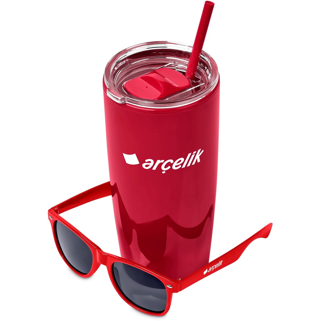 Keep recipients cool and hydrated with the Altitude Hamlin Summer Set. It includes a 600ml double-wall tumbler with a reusable straw and matching UV400 sunglasses. This practical set is perfect for general promotional campaigns.