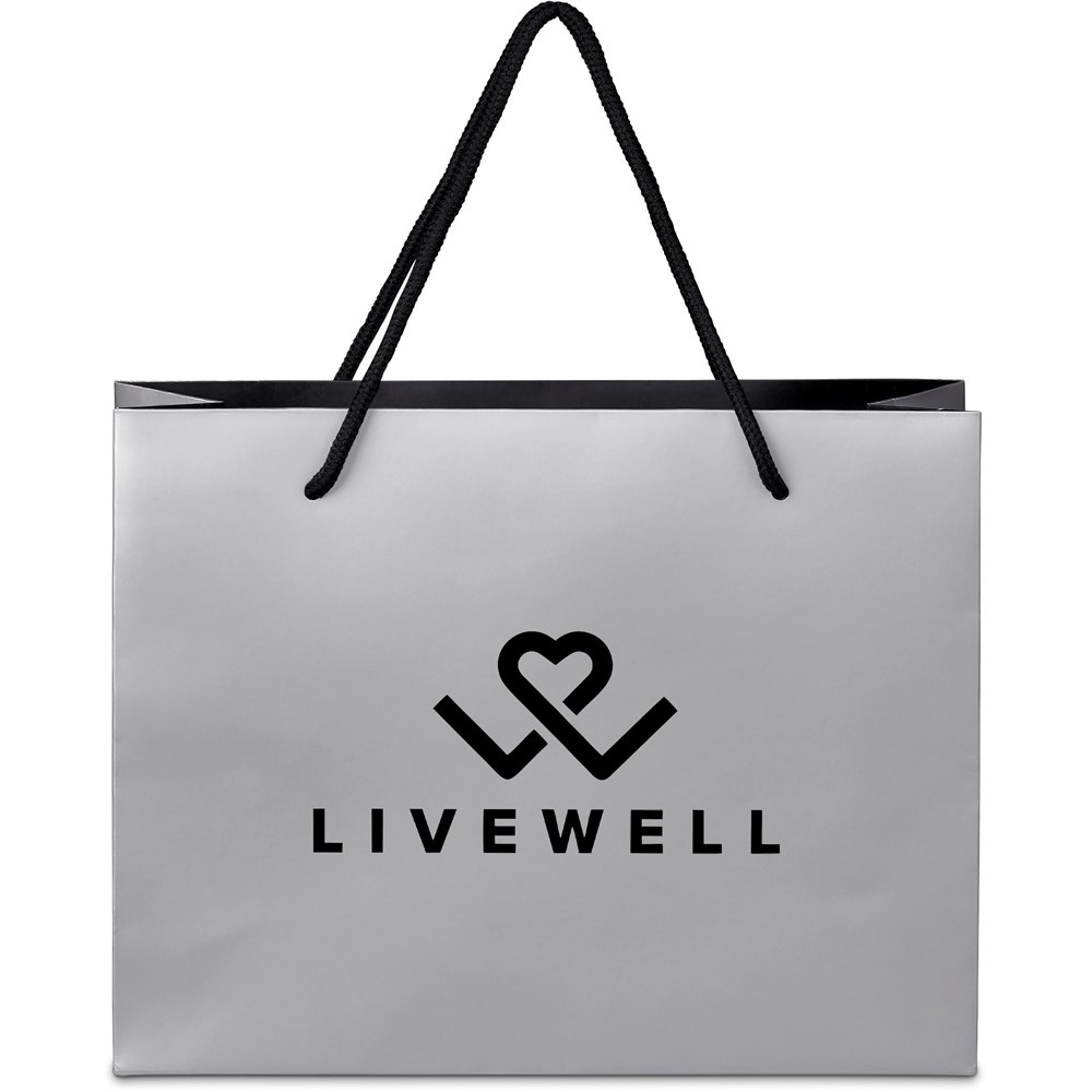 Present gifts stylishly with the Altitude Majesty Mini Paper Gift Bag. It is made from sturdy 230g/m² art card and includes black rope handles for easy carrying. This bag, measuring 26cm x 9cm x 20cm, is ideal for promotional use.