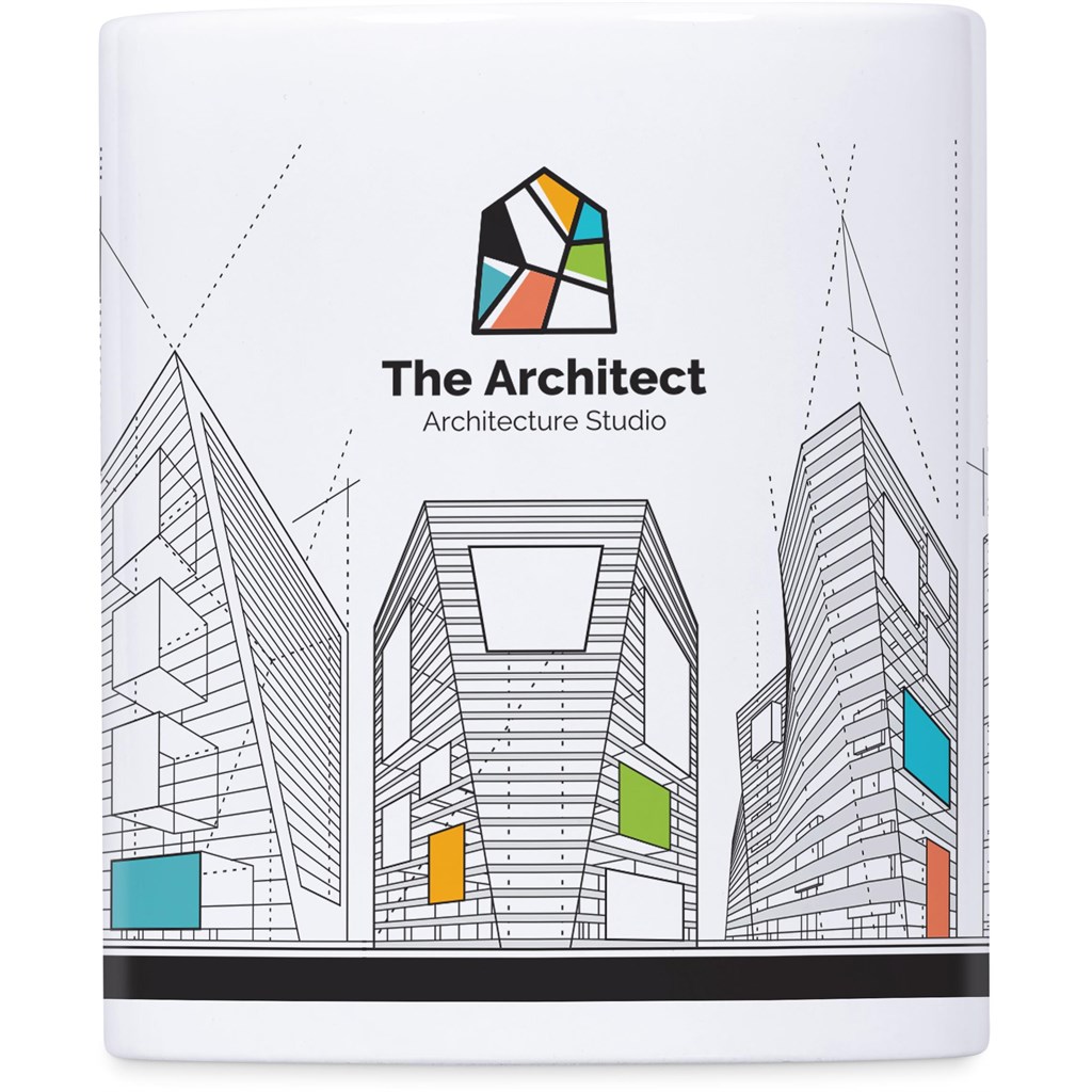 Display your brand daily and keep desktops tidy with this ceramic stationery cup. It is made from AB grade ceramic, has a 330ml capacity, and measures 9.5 cm high. Full-colour sublimation branding covers its surface, making it a visible promotional item.