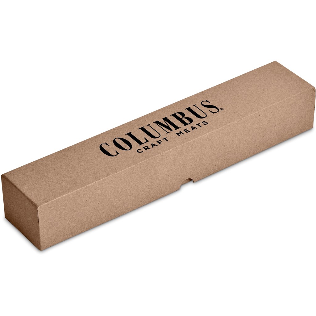 - The entire BBQ set is presented in a two-piece kraft gift box, measuring 38 L x 7 W x 6 H cm.