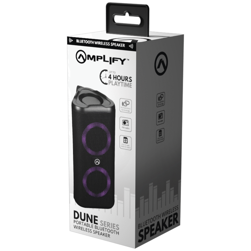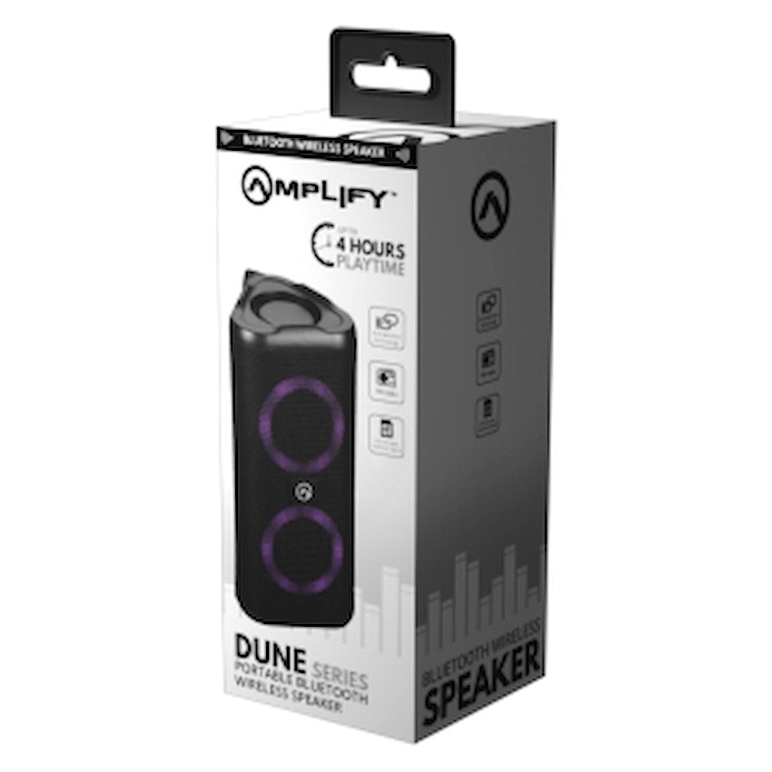 The Amplify Dune series Bluetooth Speaker in black is a practical choice for general promotional campaigns, offering a useful item for clients and staff.