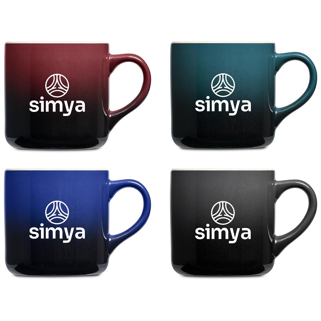 - This mug set contains four 330ml stoneware ceramic mugs, each with a different gradient colour finish and a glossy cream inner.