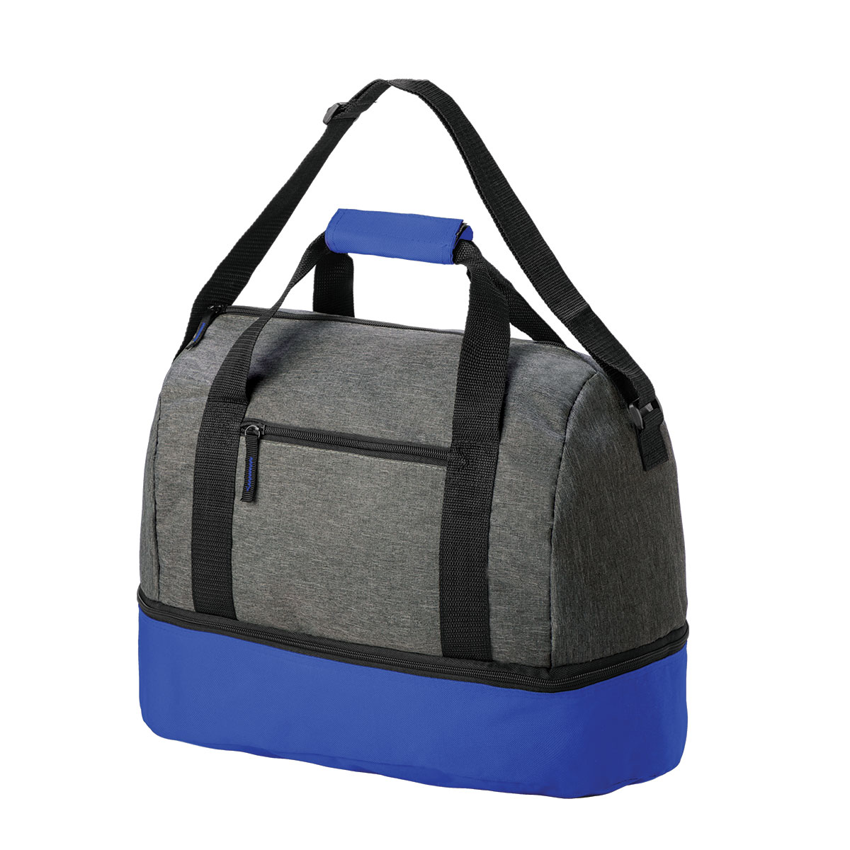 The Arena Double Decker Bag offers ample, organised storage for promotional needs. It features a main zippered compartment and a separate bottom zip-around compartment for essentials. Made from durable two-tone 600 Denier polyester, this bag is suitable for general promotional use.