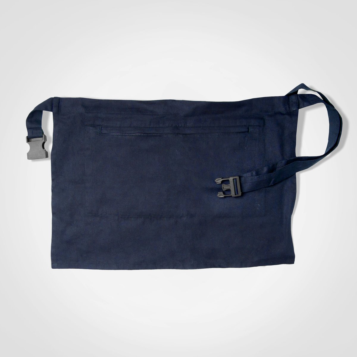 This barista apron provides a professional staff appearance for hospitality businesses. Made from a durable polycotton blend, it includes a front pocket with a zip closure for convenience. It is a smart uniform choice to display your brand.