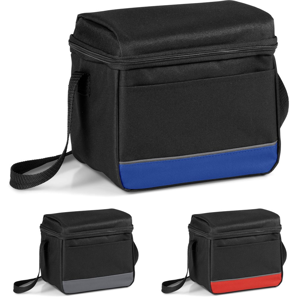 Keep drinks cool with the Below Zero 9-Can Cooler. It holds nine standard cans and features an aluminium foil lining for insulation. A shoulder strap allows for easy carrying. This cooler is good for branding.