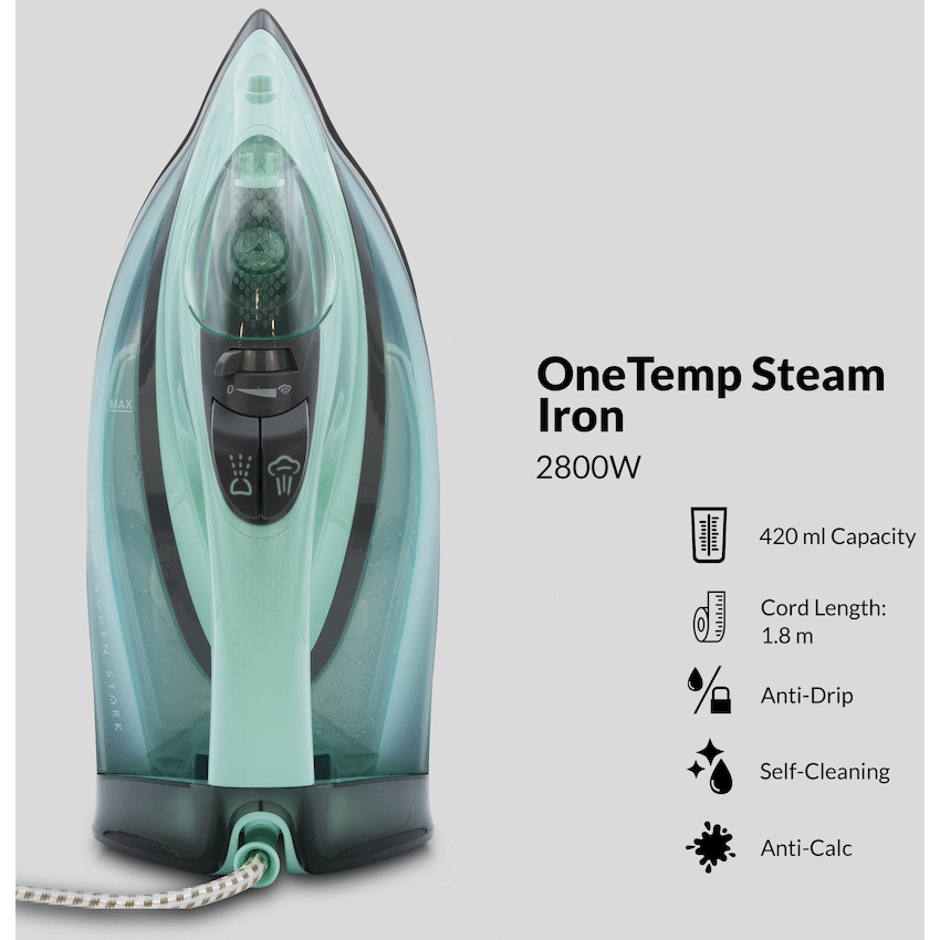 - The OneTemp function automatically sets the correct heat for all fabric types, helping prevent damage to clothes.