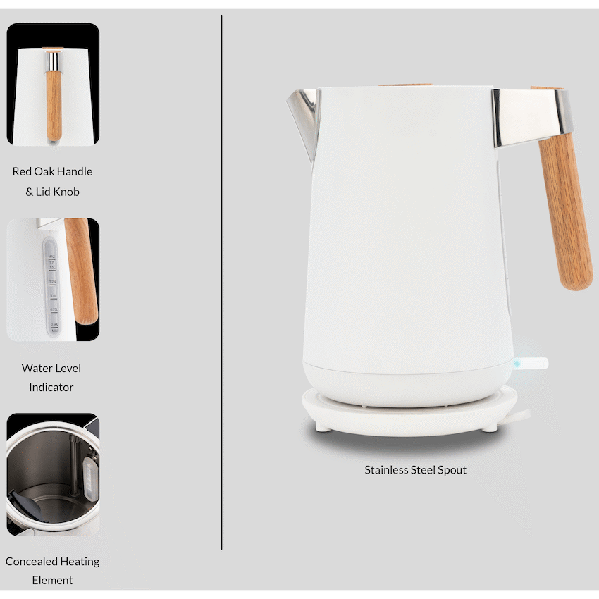 Boil water fast with the Boden Stark Anson Collection 1.7L SS Kettle. The 2000W heating element allows rapid boiling for hot drinks or cooking needs. A Strix Controller provides accurate temperature management and safety. This white kettle is a dependable Boden Stark item for any kitchen.
