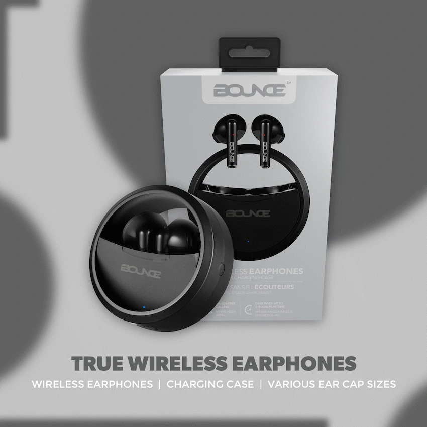 Bounce Proton Series True Wireless Earphones with Charging Case – Black