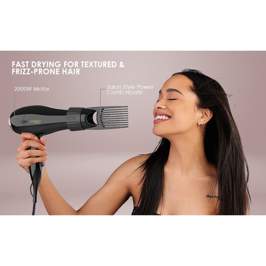 - A salon-style power comb nozzle helps direct airflow for precise styling.