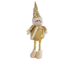 This extending snowman adds festive cheer to any space. Made from polyester and iron, it adjusts from 47 cm to 65 cm tall. Its cheerful face and sparkling gold outfit make it a delightful decoration for Christmas promotions.