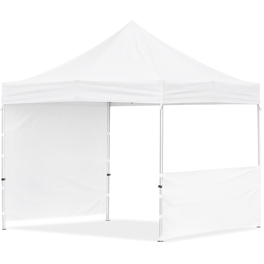 This 3m x 3m coated steel gazebo provides prominent branding at outdoor events. It includes one sublimated half-wall and one full-wall, both ready for custom graphics. The water-resistant polyester fabric ensures durability for your brand display.