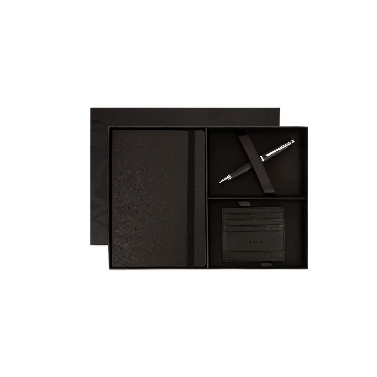 - All items in this Cross Calais™ Ballpoint Pen with Notebook and Cardholder Gift Set are black and presented in an elegant gift box.