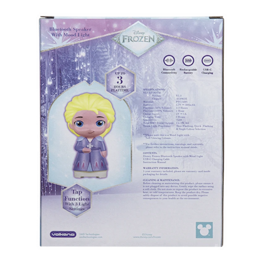 This Disney Frozen Bluetooth speaker provides entertainment and a soft, touch-controlled mood light. It connects wirelessly with Bluetooth 5.3 for audio streaming. A fun accessory for any young Disney Frozen fan.