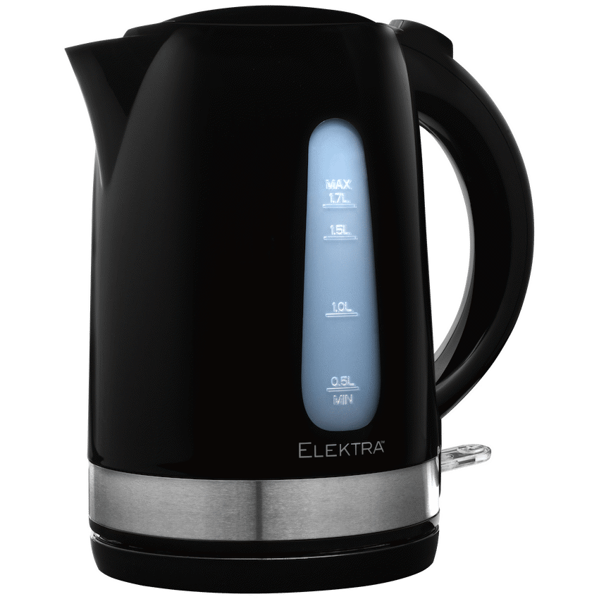 Boil water quickly with the Elektra 1.7L Plastic Kettle. Its 1850-2200W power allows fast heating for daily use. The convenient 360-degree cordless base makes pouring simple. This black kettle offers practical everyday performance from Elektra.