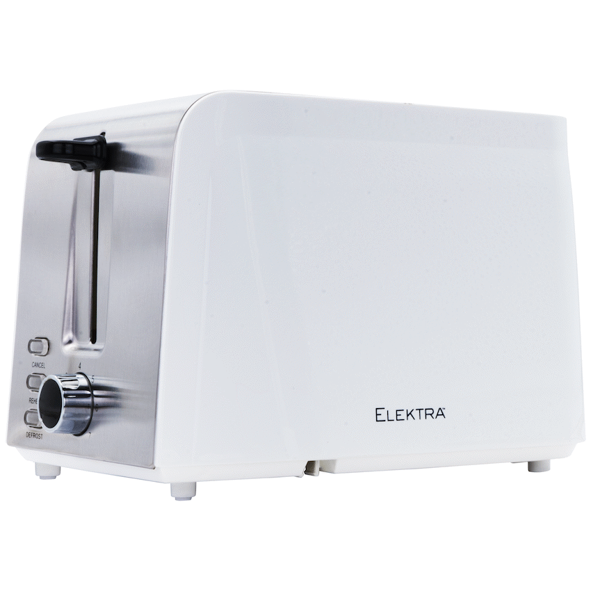 Enjoy quick, even toast daily with the Elektra 2-Slice Toaster. It uses 850W power and has a 7-level browning control for perfect results. Defrost, reheat, and cancel buttons add convenience. This white toaster is a practical Elektra kitchen appliance.