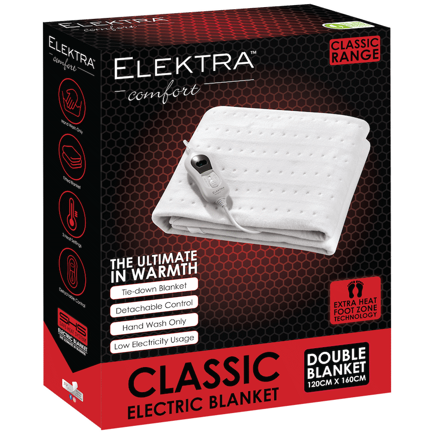 Enjoy comforting warmth with the Elektra Classic Double Electric Blanket. It fits double beds, providing heat across the mattress for colder nights. This reliable blanket comes from the trusted Elektra Classic range of home appliances.