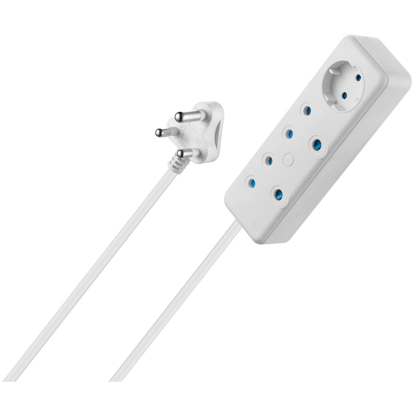 This Ellies 3 Way Multiplug provides convenient power for homes and offices. It features two 3-pin 16A sockets and one 10A Schuko socket. The 0.5-metre cord helps keep your space neat, making it a practical Ellies power accessory.