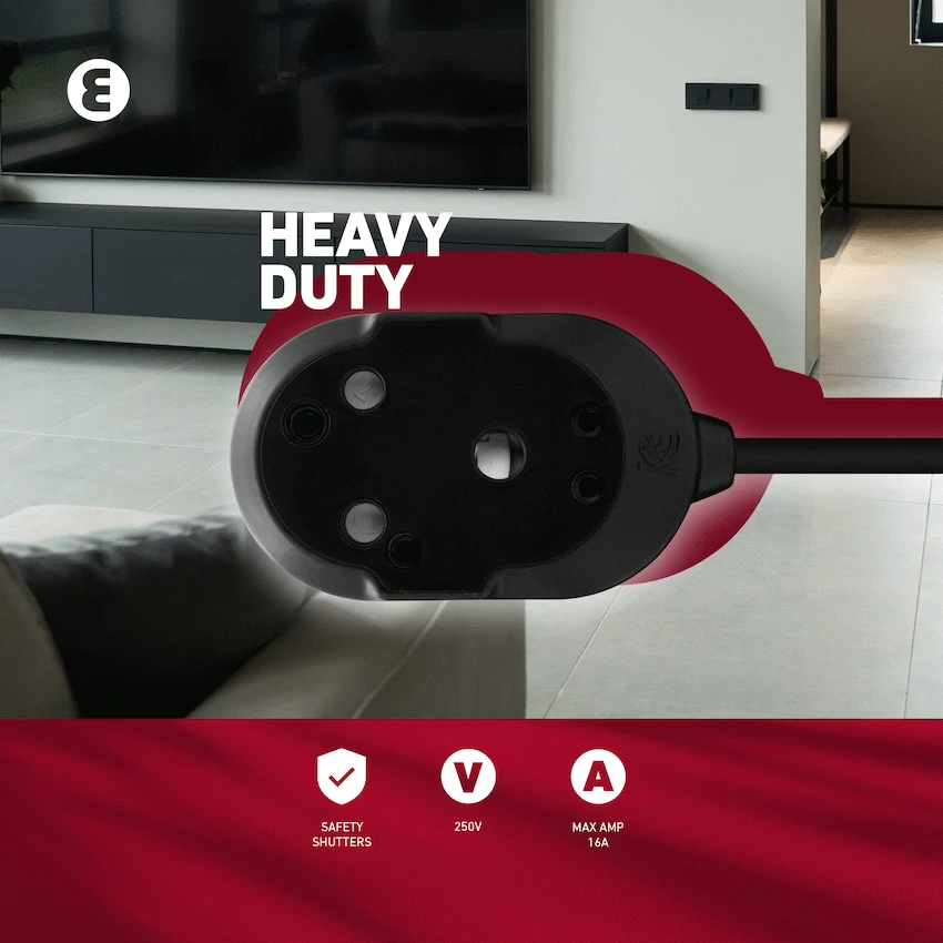 Get dependable, compact power with the Ellies Back to Back Heavy Duty Extension Lead – 3m. Whether for your office, workshop, or home setup, this heavy duty extension lead delivers safe, high-performance power where it matters most.Equipped with 2 x 16A 3-pin sockets, this Ellies extension lead supports up to 16A at 250V-perfect for powering demanding appliances, electronics, or tools. The 3-metre PVC cable (3×1.5mm2) offers just the right reach without excess clutter, while the back-to-back socket design keeps plugs neatly aligned and easy to access.Safety is top priority, with built-in safety shutters providing protection from accidental electrical contact-making this a smart choice for homes with kids or pets. Built tough for everyday use, it’s the ideal companion for any environment needing reliable, compact power.