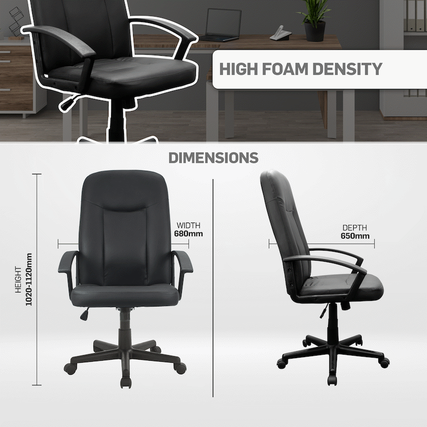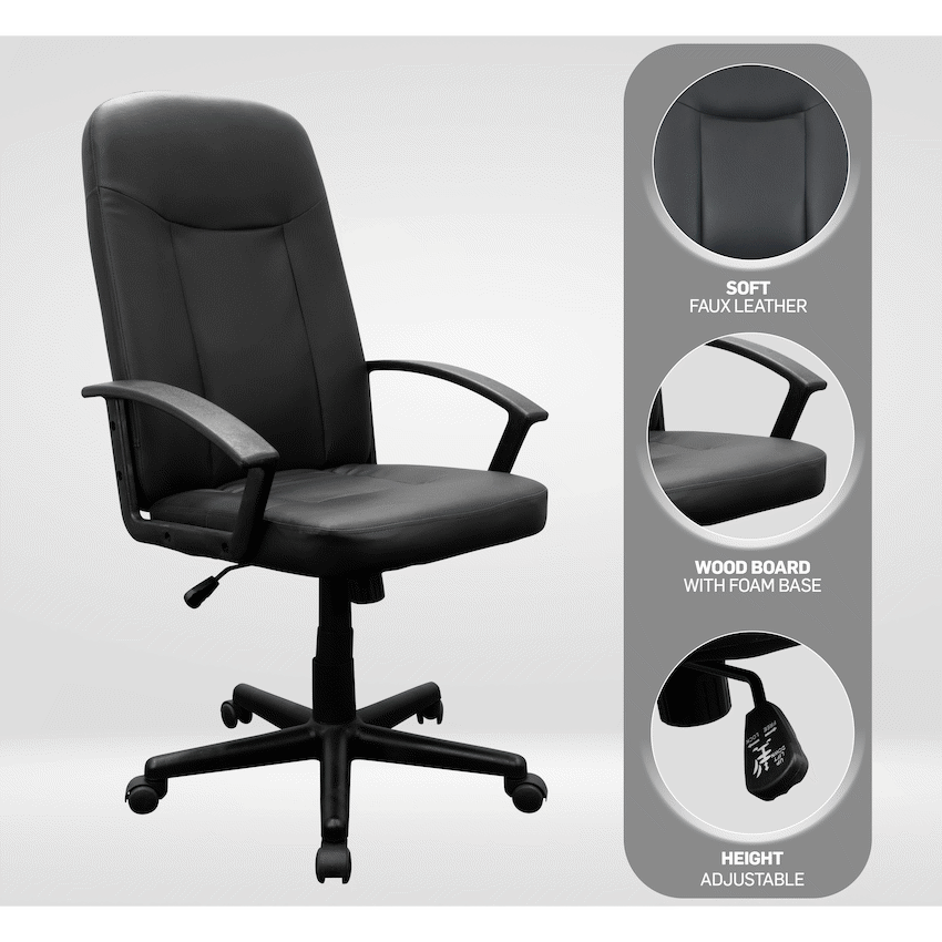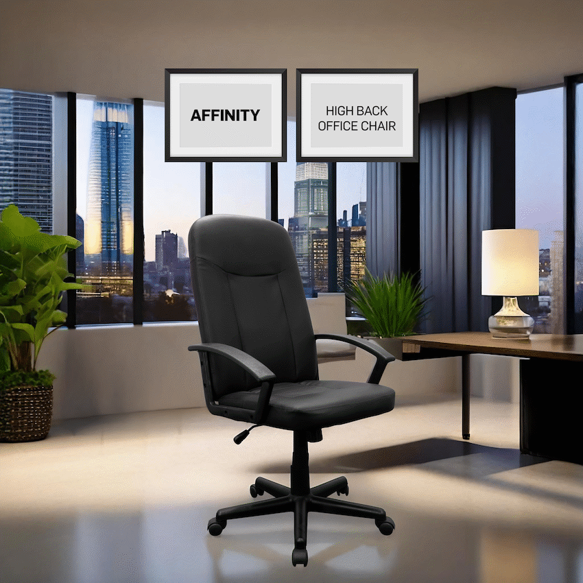 The Everfurn Affinity High Back Office Chair offers lasting comfort. It has a cushioned high backrest for ergonomic support and durable, easy-to-clean PU leather upholstery. This chair is a good choice for any professional setting, reflecting Everfurn’s reliable design.