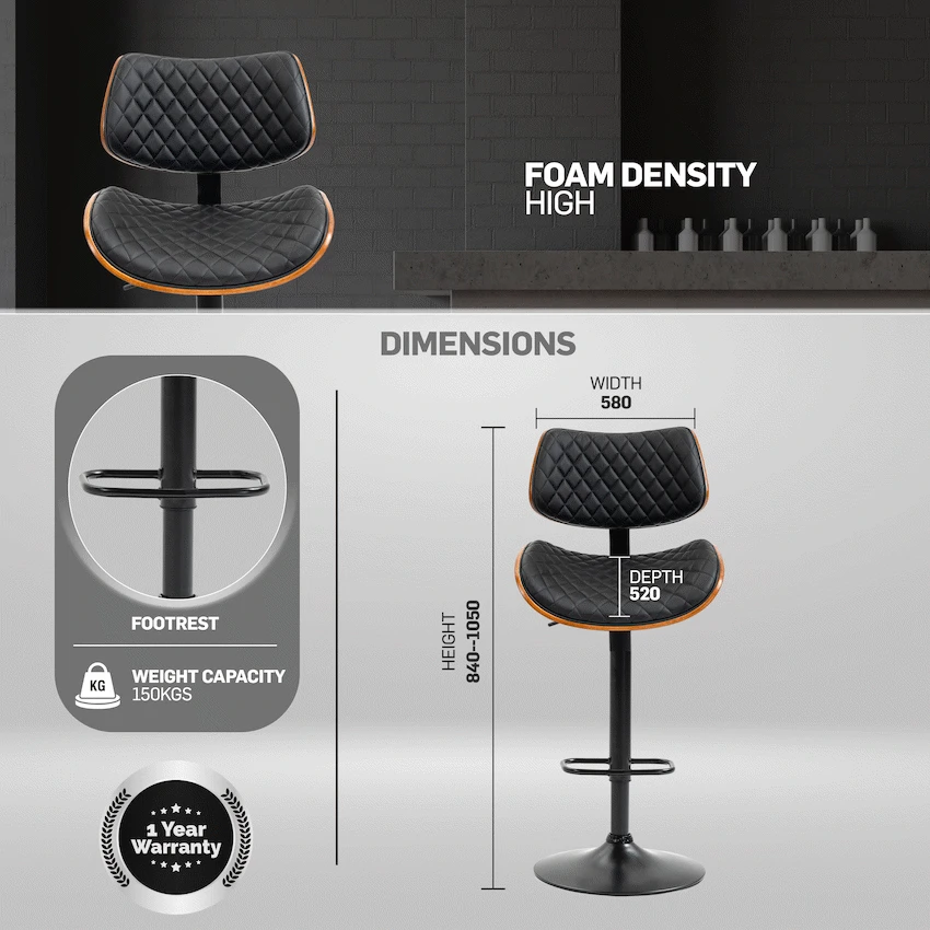 - Each barstool measures L:520 x W:580 x H:1050.