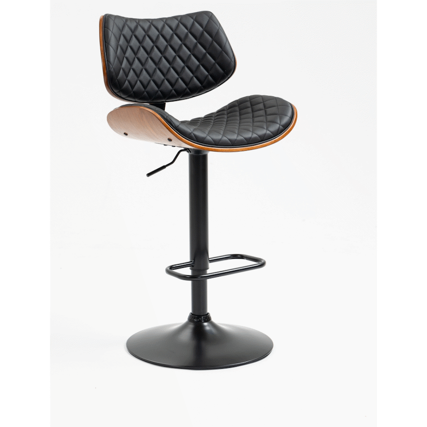 - Each barstool is constructed with a PU seat, a bent wood backrest, and a powder-coated steel base.
