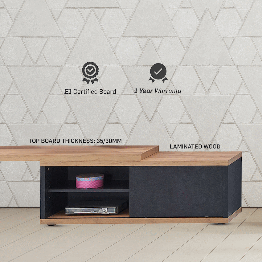 This Everfurn Extendable TV Stand provides adaptable storage for various television sizes. It adjusts from 1200mm to 1500mm and has sliding doors for hiding items. Made from engineered wood, it offers a practical addition to your home from Everfurn.