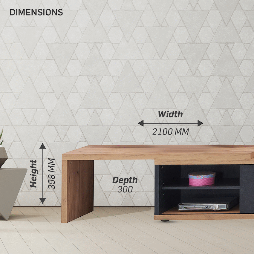 - This TV stand adjusts from 1200mm to 1500mm in length to suit various television sizes.