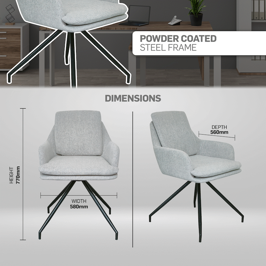 The Everfurn Gump Chair provides comfortable seating for corporate events or reception areas. It has a sturdy 25mm powder-coated steel frame for lasting use. This single chair measures 56cm x 58cm x 77cm, offering a practical solution from Everfurn.