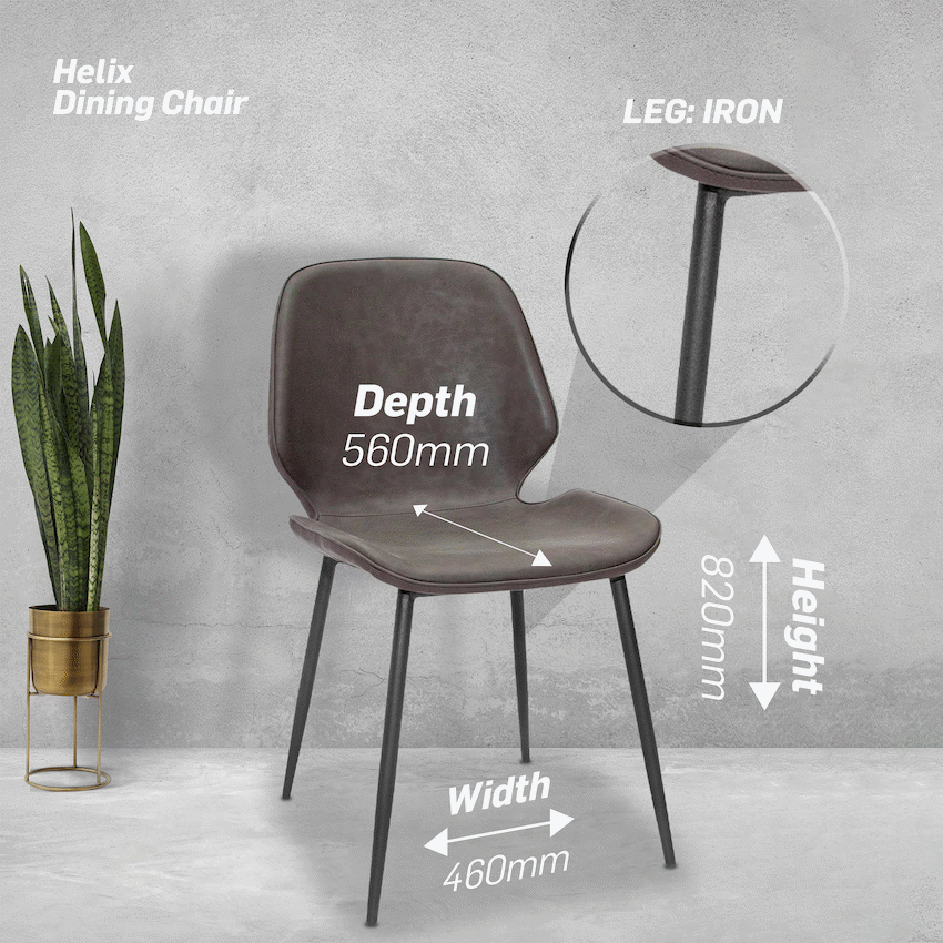 Enjoy versatile seating with the Everfurn Helix Dining Chair. It features a stable iron base and high quality faux leather for comfort. Its compact size and 5 kg weight allow for easy movement. It is a practical Everfurn item for many settings.