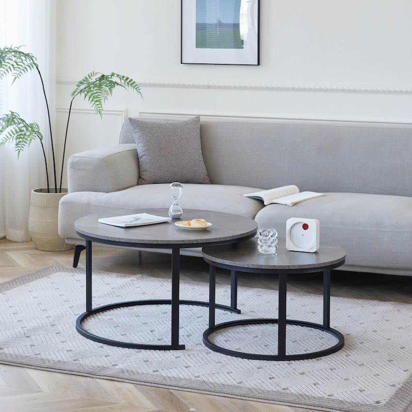 The Everfurn Indus Nesting Coffee Table Marble Grey 2-piece set offers a versatile and stylish furniture option for corporate spaces or as client gifts.