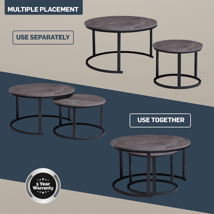 Everfurn Indus Nesting Coffee Table Marble Grey 2 – Piece