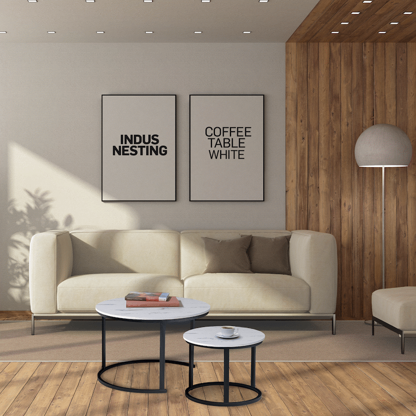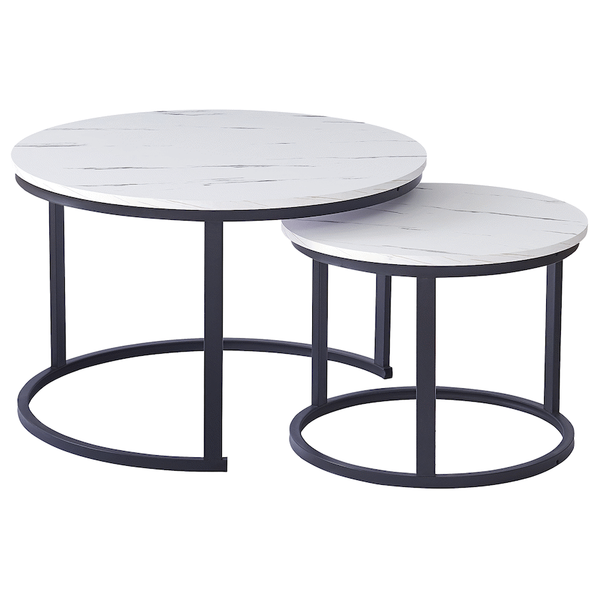 - The set includes two white nesting coffee tables, suitable for different room layouts.