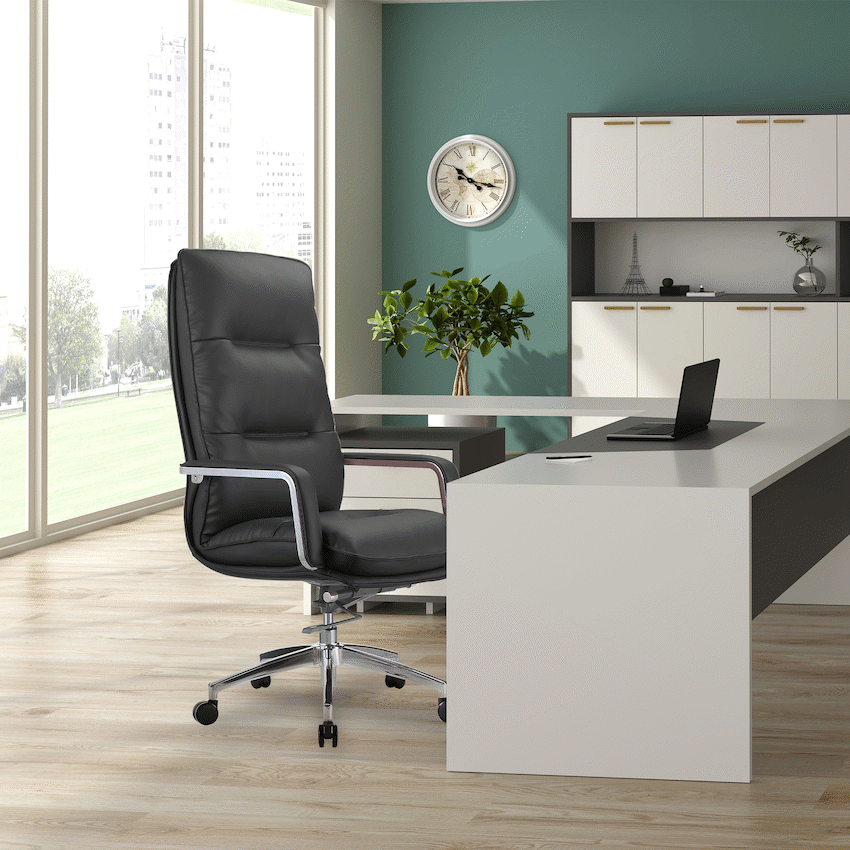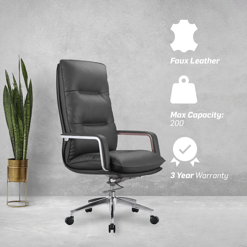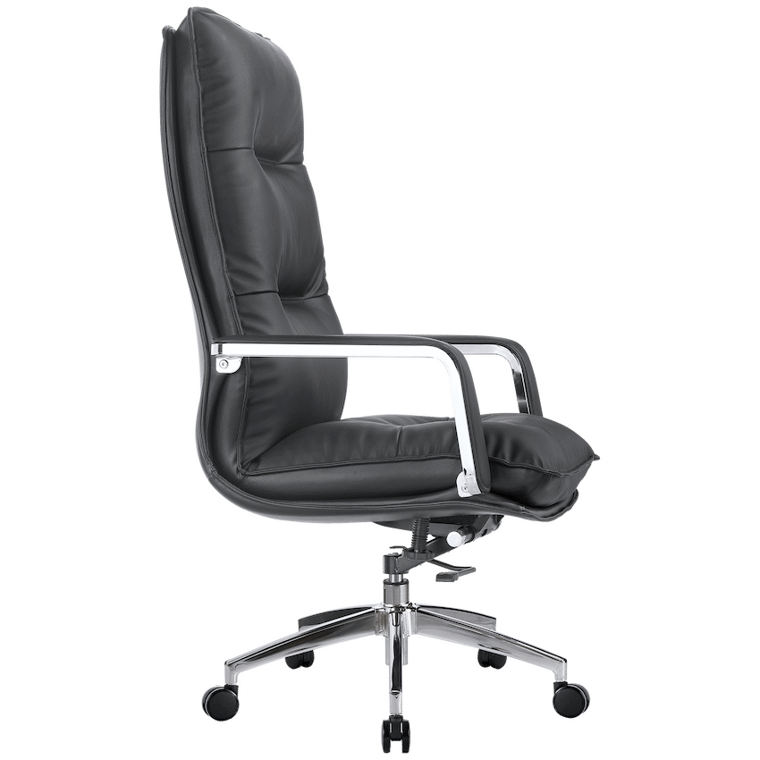 This Everfurn Mammoth High-Back Chair offers strong, comfortable seating for long workdays. It features high-quality PU leather and dense foam for lasting comfort. A chrome base with racer casters provides stability and smooth movement, making it ideal for any professional office.
