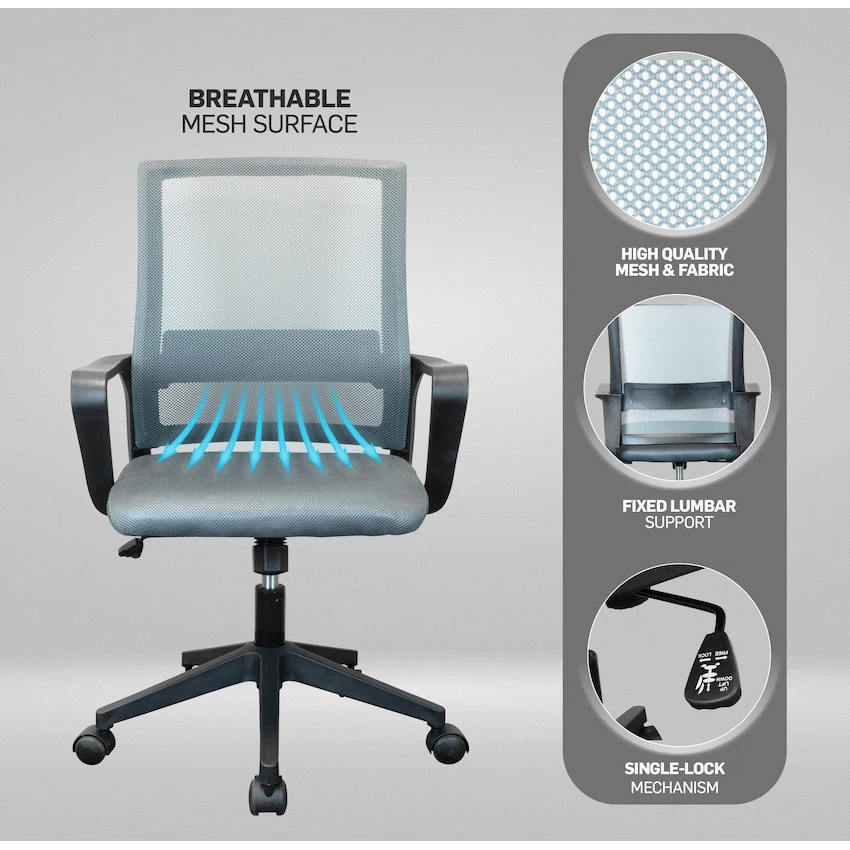 This Everfurn Marine Mid-Back Chair in grey makes a practical item for general promotional use, providing comfort in office environments. It is a suitable choice for businesses looking to furnish their workspaces.