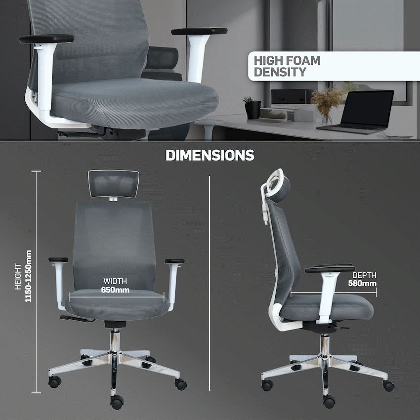• The Everfurn Mercury High Back Office Chair has dimensions of 650mm length x 510mm width x 1250mm height.