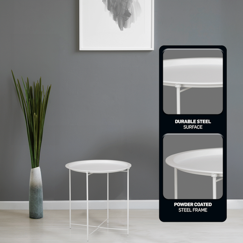- Constructed with a white painted MDF top and a sturdy steel frame for stability.