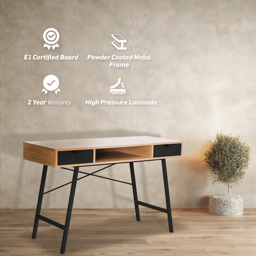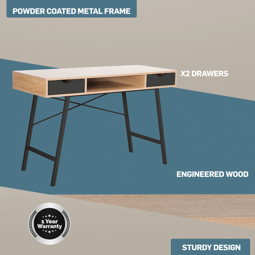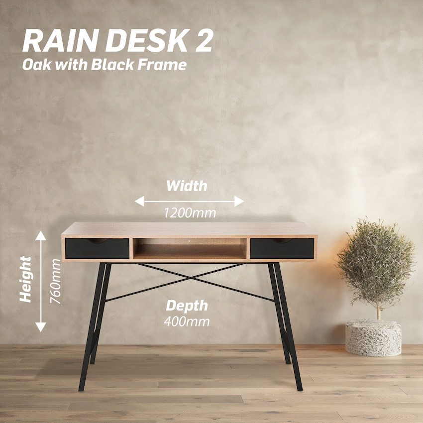 The Everfurn Rain Desk provides a practical and durable workspace. It features a spacious 1200x480mm surface and two built-in drawers for convenient storage. A strong steel frame ensures stability, making this a reliable Everfurn desk for any setting.