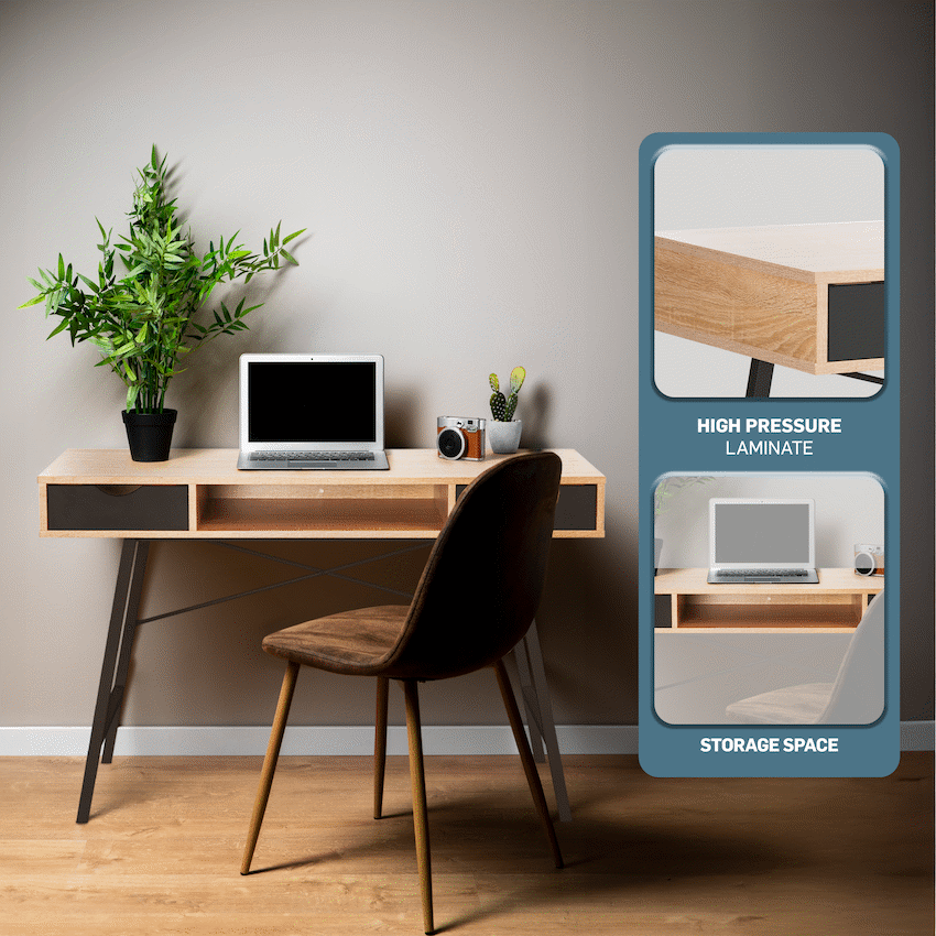 - It includes two built-in drawers for convenient storage of office supplies or personal items.