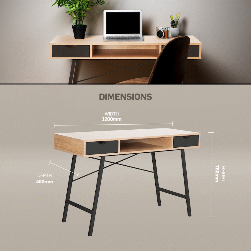 - This desk offers a spacious surface, measuring 1200 mm long, 480 mm wide, and 760 mm high.