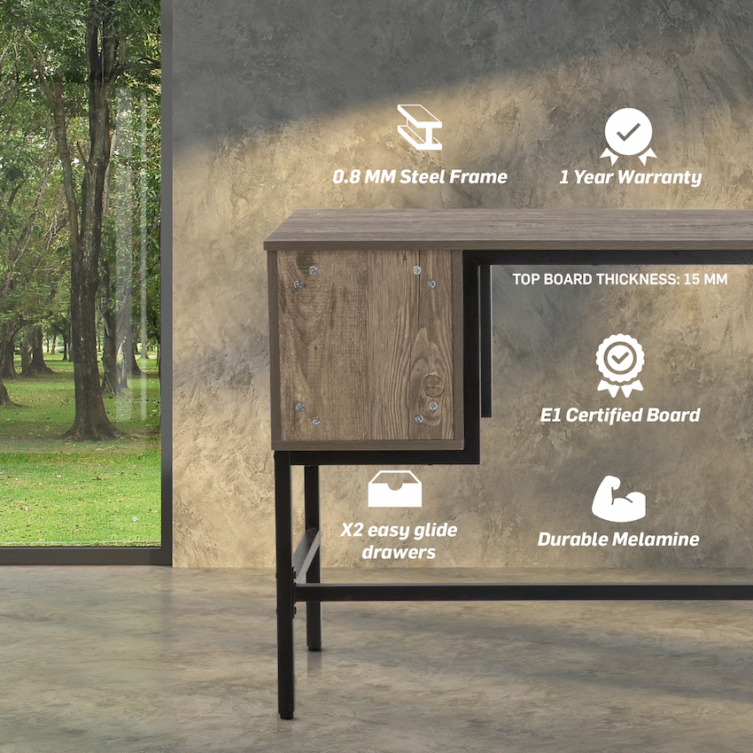The Everfurn Rampart Office Desk provides a practical workspace with two integrated drawers for storage. Its strong 0.8mm powder-coated steel frame and adjustable feet keep it steady. This functional desk fits well in any office, showing Everfurn’s dedication to helpful items.